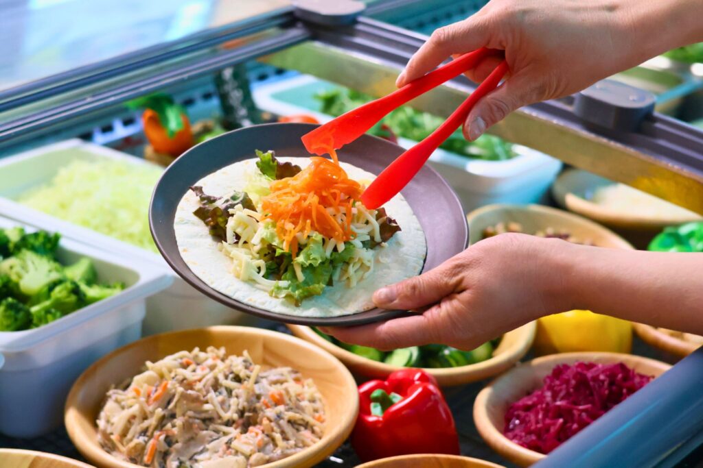 今季は新たに、具材を自由に組み合わせて楽しめるサラダ&タコスバーを設置する。肉、野菜、ソースを選び、自分好みのタコスを作れるエンタメ要素もあるコーナーだ。