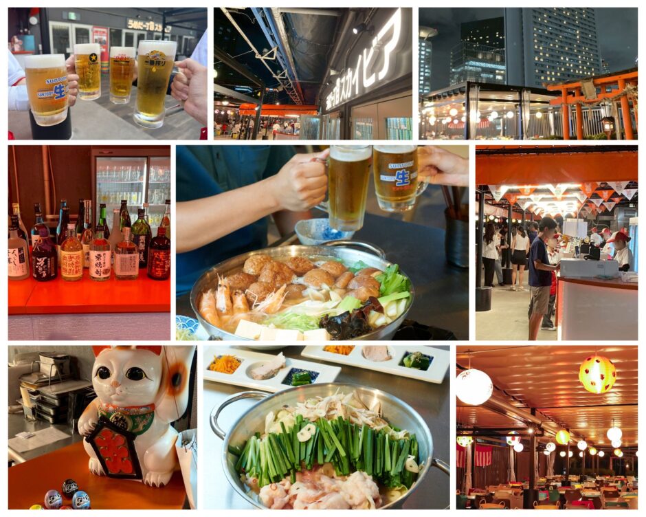 うめだの星空の下、懐かしくも新しい「昭和レトロビアガーデン うめだ一丁目スカイビア」が11月から屋台スタイルに!国産和牛もつ鍋・肉団子の寄せ鍋・ジンギスカンをメインに、BBQ・おでん・焼き鳥など多彩なコースをご用意。サロマ和牛や薩摩茶美豚、海鮮、旬野菜など厳選素材を贅沢に使用。4大メーカーのビール飲み比べや20種以上のハイボール、各都道府県の焼酎も楽しめます。最大200席の屋上はビニールカーテンで防寒対策も万全。あたたかく快適な空間で、夏の名残と秋の心地よさを満喫できる今がまさにベストシーズンです!