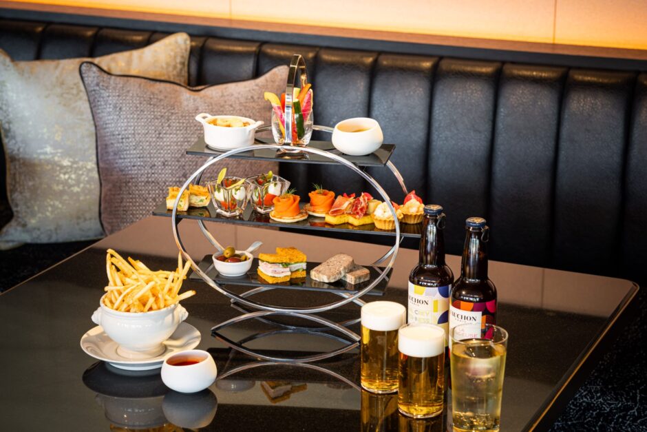 フォションホテル京都10階「ル バー フォション」で提供される、屋内型の夏限定ビアガーデンセット。フレンチの技法で仕立てたカナッペやフードを、ビール、ハイボール、レモンサワーなどのフリーフロードリンクとともに楽しめる。フォションのクラフトビール2種から選べる特典が1人1本付き、暑い日や雨の日でも涼しい店内で利用できる。各利用時間は2時間制で、要予約。