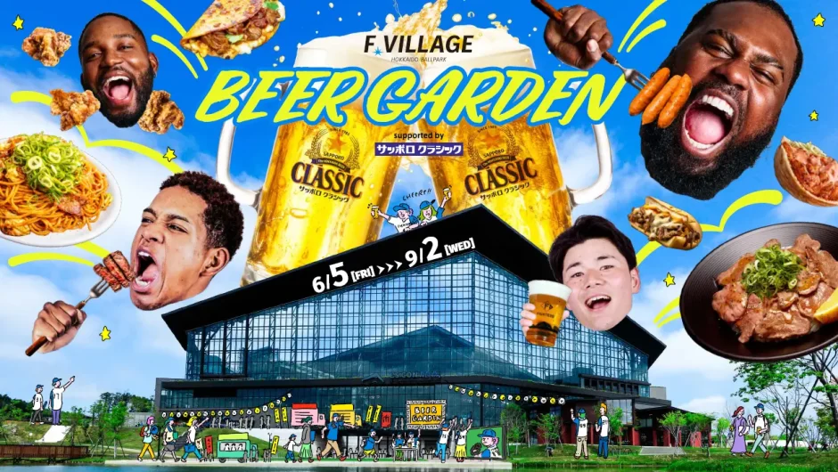 北海道ボールパークFビレッジで開催される、夏季限定のビアガーデン。北海道初出店のグルメが期間を3つに分けて登場し、サッポロ クラシックなどのドリンクとともに楽しめる。会場はFビレッジ内 WIND PLAZAで、約200席の開放的なテラス席を用意。試合日・試合がない日を問わず利用でき、特設ビジョンでの野球観戦やステージイベントも実施される。